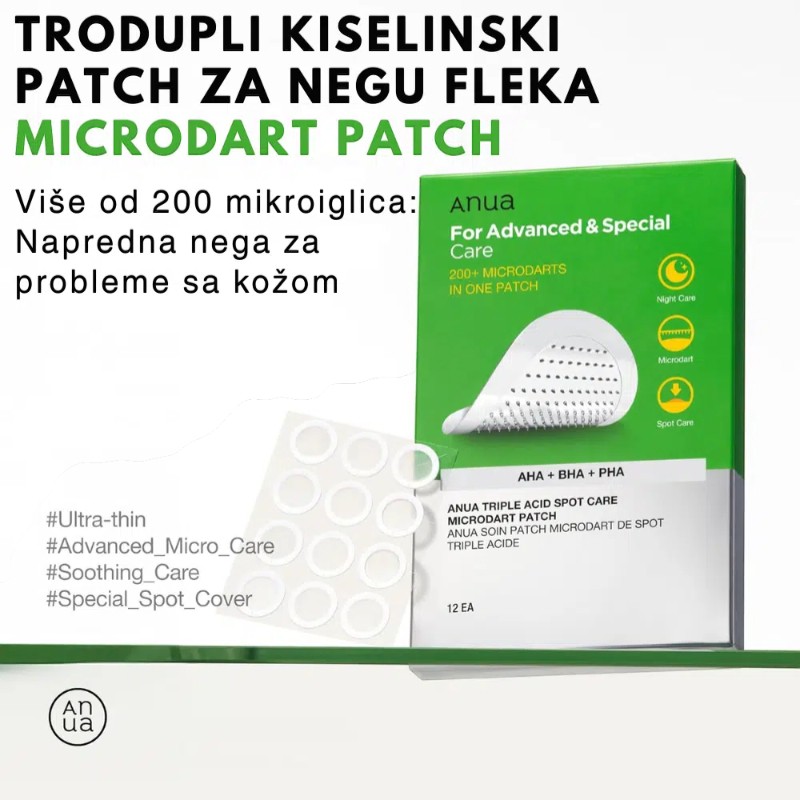 Anua Triple Acid Spot Care Microdart Patch 12 patches je specijalizovani tretman za ciljanu negu problematičnih regija kože, dizajniran da pruži intenzivno delovanje tamo gde je najpotrebnije. Zahvaljujući naprednoj Microdart tehnologiji sa više od 200 mikroiglica u jednom patch-u, ovaj proizvod omogućava dublju isporuku aktivnih sastojaka direktno u zahvaćeno područje.